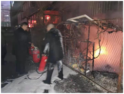 2020年1月28日晚20點50分,沈陽廣播電視臺北院家屬樓南側(cè)1單元飯店突發(fā)火情,家屬樓值班人員第一時間發(fā)現(xiàn)情況及時與我處門衛(wèi)聯(lián)系尋求幫助,門衛(wèi)保安隊員在了解情況后馬上聯(lián)系值班班長孫永升,孫永升出于職業(yè)的敏感性,馬上啟動緊急預(yù)案,向監(jiān)控中心及隊長進行報告后,帶領(lǐng)保安隊員及消防設(shè)備一同趕赴火災(zāi)現(xiàn)場。